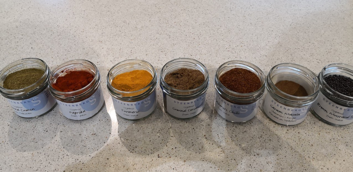 To purchase the spice kit please visit our website: https://steenbergs.co.uk/sharmini-s-indian-spice-starter-box-steenbergs-sha021