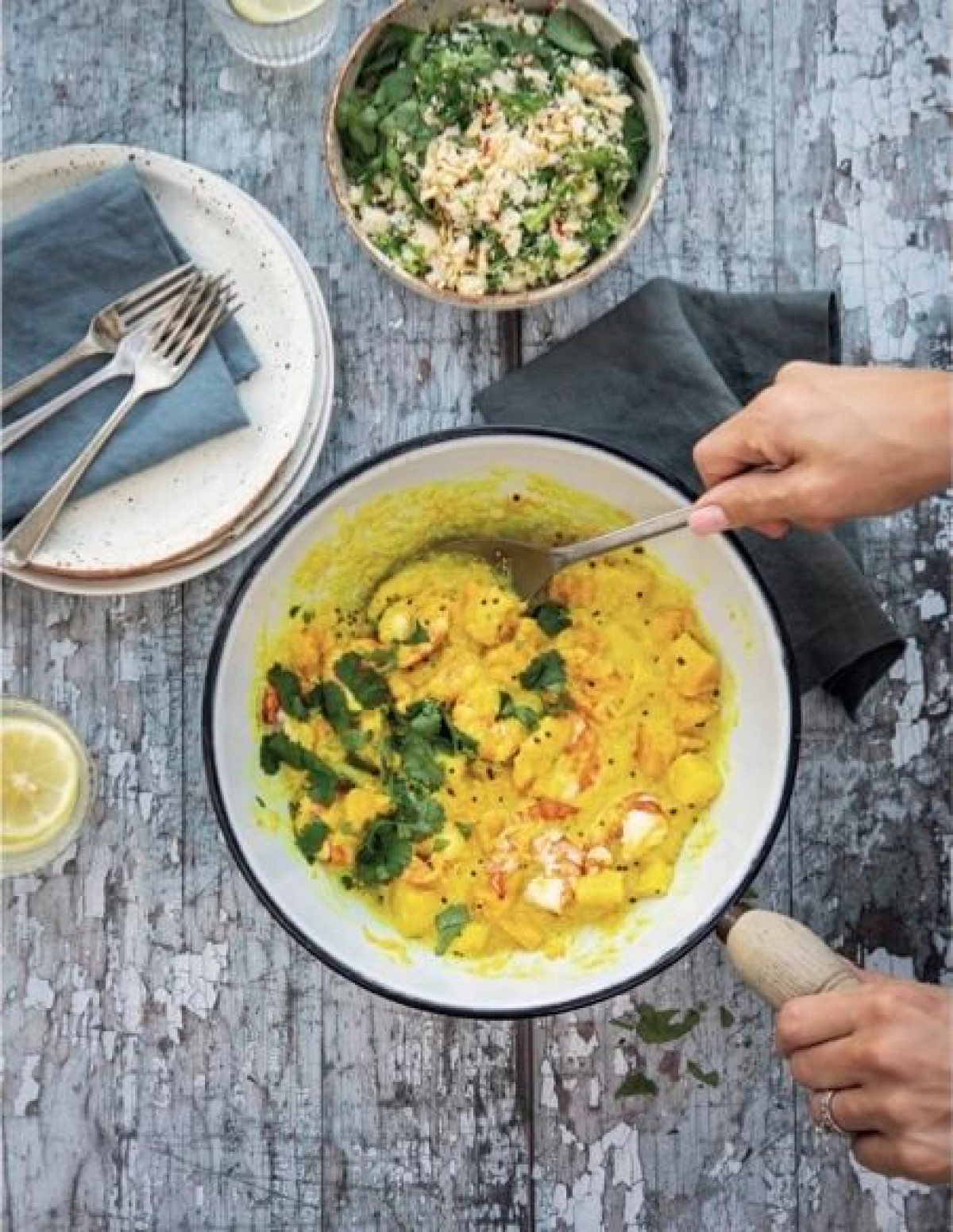Charlotte has kindly shared a couple of the recipes with us, so we have cinnamon filled Apple Pie Pancakes and a fragrant Yellow Coconut Curry with tiger prawns for you to try. Do let us know how you get on!