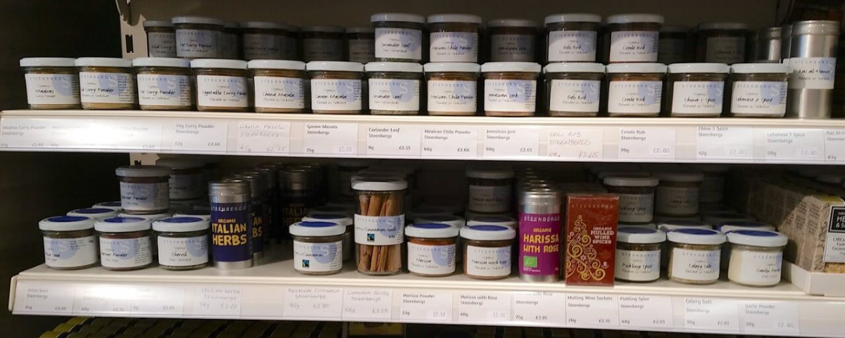 In terms of Steenbergs products, we carry a whole array of the spices and blends, along with some flower waters, and natural flavourings. We are adding new products to the shelves each time we order.