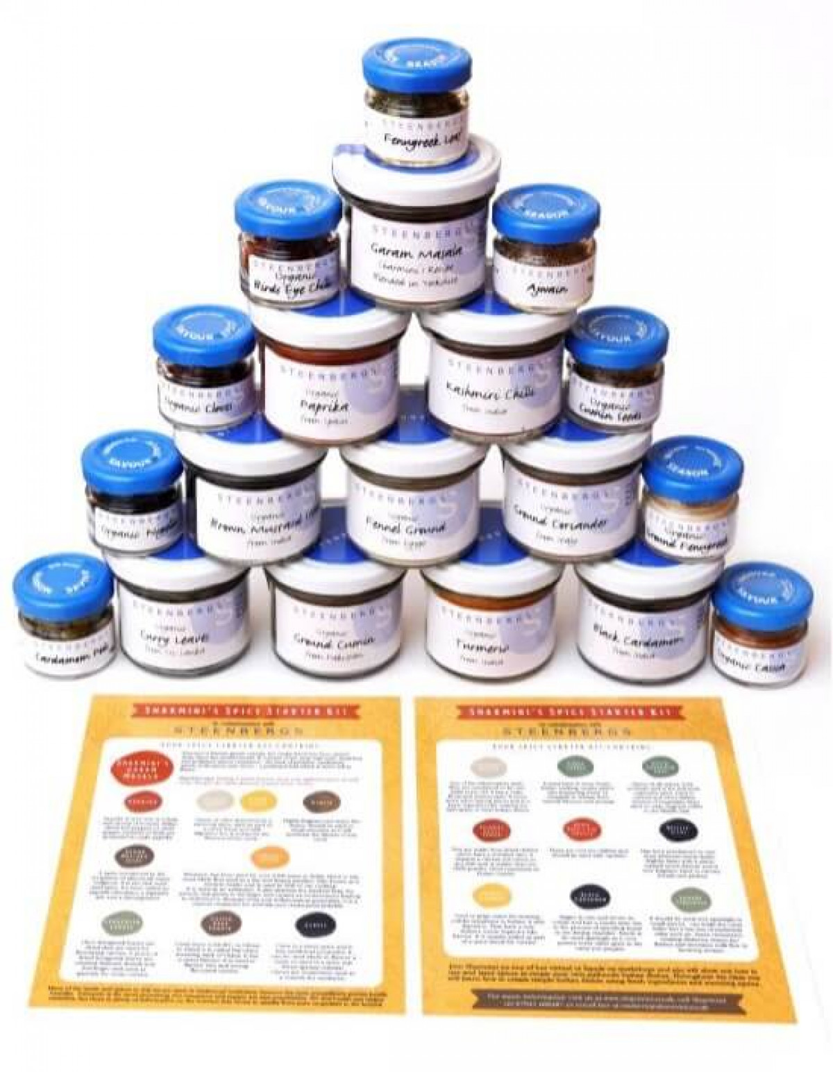 We stock a fabulous starter set of Steenbergs spices, specially designed to cater for all of Sharmini's recipes as well as a delicious, unique recipe for Sharmini's Garam Masala, passed down to her through the generations of her family.